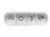 2 tablešu nodalījumi katrai nedēļas dienai (no rīta un pēcpusdienā) ar krāsu kodiem.