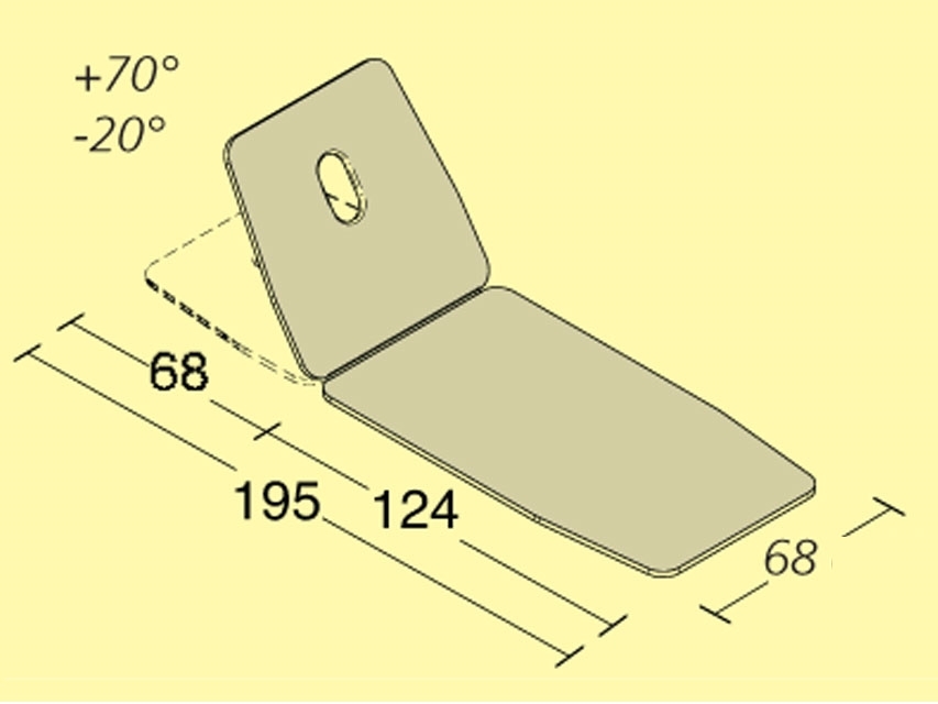 The large head-section can be adjusted positively and negatively and serves as back-rest.