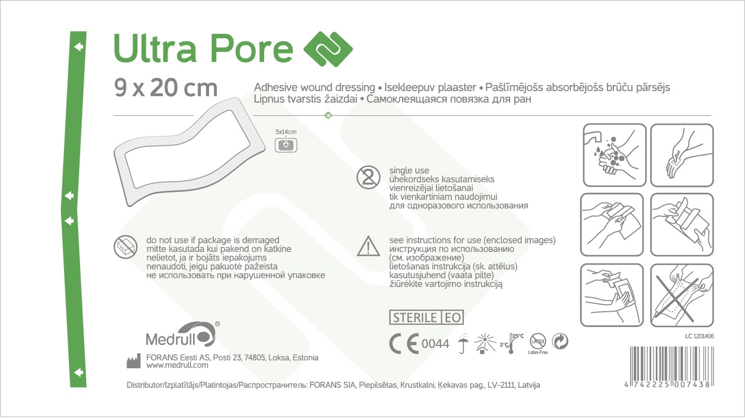Medrull Ultra Pore Самоклеящаяся абсорбирующая повязка для ран стерильная 9х20см №1